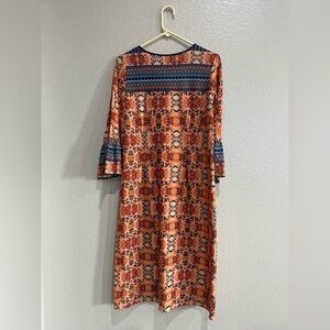 Oxygen Women’s Bohemian Orange and Blue Dress Size Large Cabin core Prairie folk
