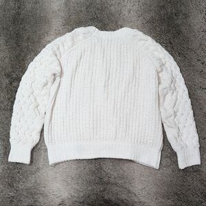 Oysho Cable Knit Basket Weave Chenille Sweater Cream Women's Medium