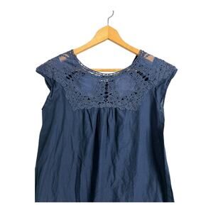 Oysho Cap Sleeve Lace Trim Mini Shift Dress Blue S Small Boho Swing Smock
