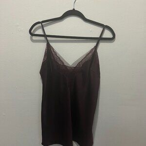 100% authentic Oysho cami with lace and mesh in women's size S. Made of 100% polyester. No stains, snags, etc. Dark red wine color.