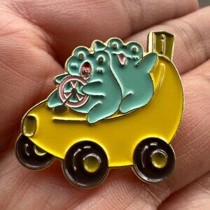 ☀️Oz Fun Frogs Enamel Pin Banana Fuit Car Cartoon Animal Brooch Yellow New☀️