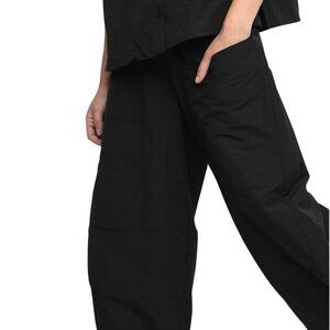 Ozai N Ku Barrel Leg Pants, Black Flat Front Elastic Back Waist Size Medium NWT
