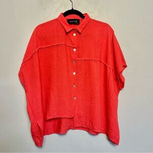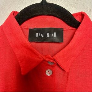 Ozai N Ku Easy Button Down Shirt Coral Size Small