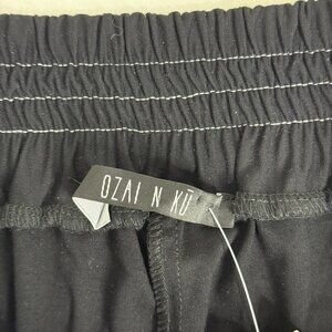 Ozai N Ku Womens Crushed Pants M Black Pull-On High Rise Lagenlook Alembika