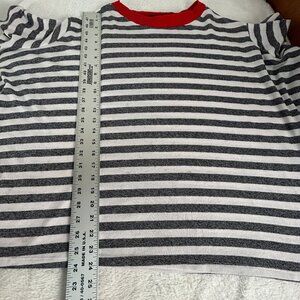 Make a bold, artful statement with this Ozai N Ku striped poncho top. Featuring a relaxed oversized silhouette and minimalist gray-and-white stripes, this pullover blends comfort with contemporary design—ideal for creative wardrobes.