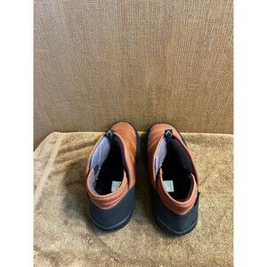 The Ozark Trail Men's Boot Slippers in size 10 are a versatile and comfortable option for indoor and outdoor wear. With a slip-on design and round toe shape, these slippers feature a solid brown color and are ideal for travel, activewear, casual outings, or workwear. Made with a synthetic lining and blended fabric upper material, these slippers have a flat heel and standard shoe width for added comfort. The rubber outsole provides traction, making them suitable for various seasons throughout the year. Perfect for men seeking a combination of style and practicality in their footwear.