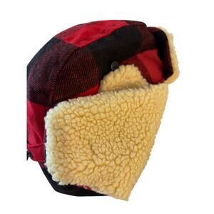Ozark Trail NWT Trapper Hat One Size Adult Red Black Buffalo Check with Faux Fur! New! Perfect for cooler weather!
