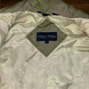 Ozark Trail Puffer Vest Mens M Tan Beige Snap Nylon/Poly Utility Camp Hunt Fish