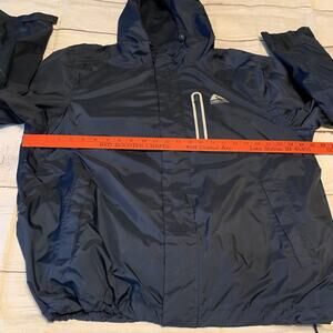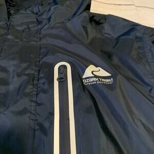 Ozark Trail Waterproof Rain Jacket Mens Size Medium/Large Blue Outdoors Hiking. Good preowned condition. Please see all pictures for reference, condition and measurements.