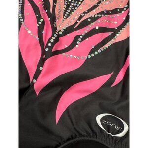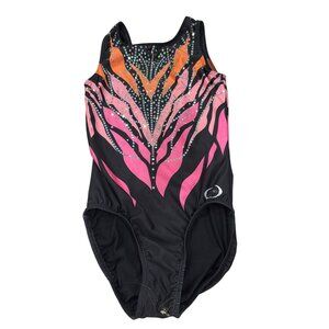 Ozone One-Piece Gymnastics Leotard Black With Pink/Orange Abstract Design & Rhin