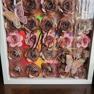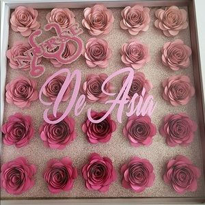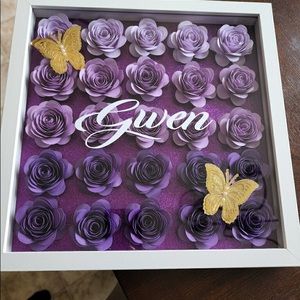 Beautiful gift idea it’s is in a variety of colors ain’t any name that you want 12 x 12 or 65+ shipping 11 x 14 and a display case comes in white black wood grain No refunds and a deposit is due at the time of ordering