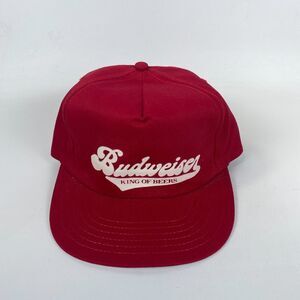 P Baseball Cap Mens One Size Red Budweiser King Of Beers Printed Strapbaack