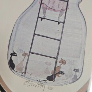 P. Buckley Moss Framed Cats in Jar Print Signed and Numbered 295/1000