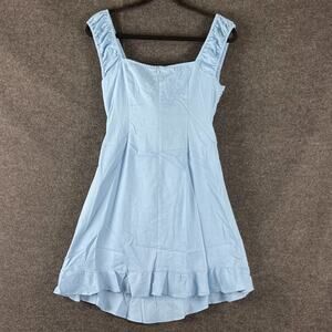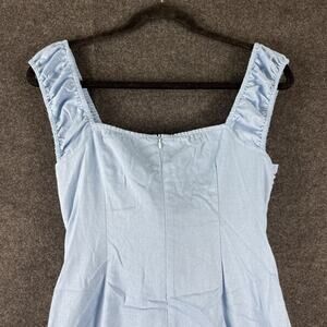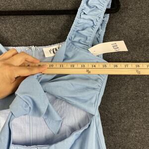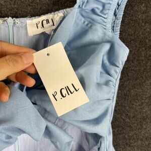 P Cill Linen Blend Mini Dress Womens Medium Blue Tie Front Ruffle Cut Out NEW