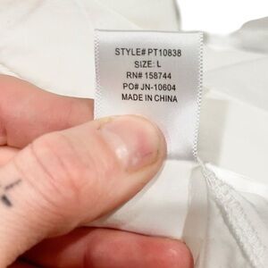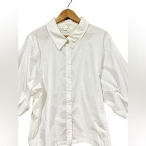 P Cill Poplin Button Up Blouse 3/4 Poof Balloon Sleeves White Large Elegant Work