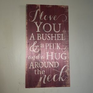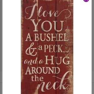 P. Graham Dunn-“I Love You a Bushel and a Peck” red vintage style with cream/off white lettering -pine wood wall art