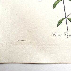 P. J. Redoute, Hand-Colored Engraving, Phlox Reptans, 1827, 12 1/2" x 9 1/2"