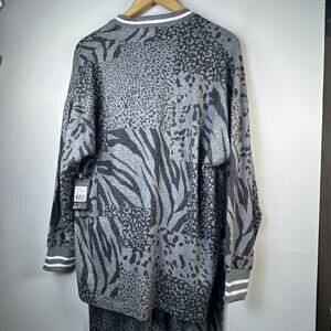 P. J. Salvage long sleeve cardigan button front gray animal print and pants XS