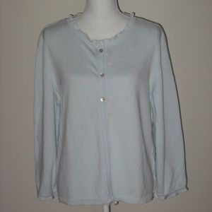 P. JAMES Torquise Cotton Women's 3/4 Button Front Cardigan Sweater. Size: M. Fabric: 100% Cotton. 3/4 Sleeve. Excellent Pre-Owned Condition.