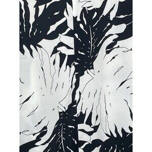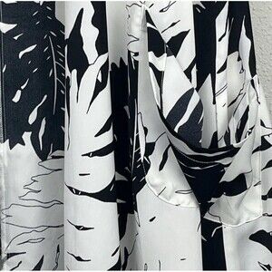 P Luca Milano Cardigan Sleeveless Open Front Tunic Lightweight Lagenlook Black and White Tropical Palm Leaves Stand Up Split Back Collar Baggy Oversize Front Pockets
