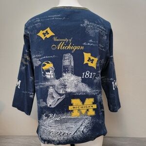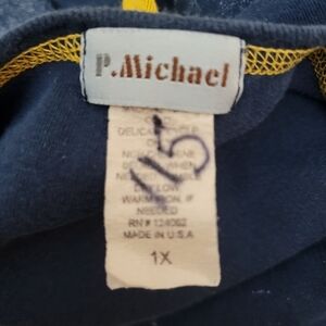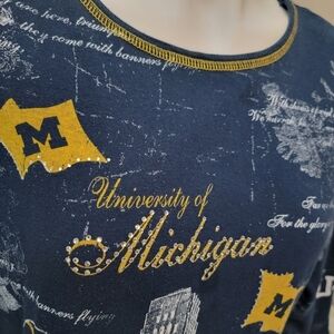 P Michael Blue Yellow Top 1X Michigan State University Fan Rhinestone Graphic