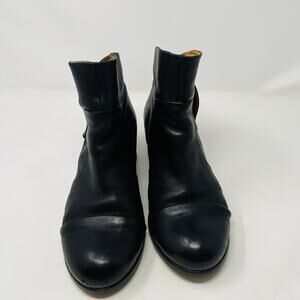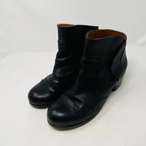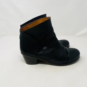 P. Monjo Womens Black Leather Pull-On Round Toe Cap Ankle Boots Size EU41