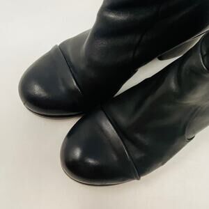 P. Monjo Womens Black Leather Pull-On Round Toe Cap Ankle Boots Size EU41