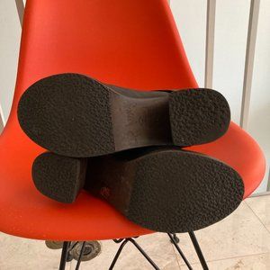 Worn 3-4 times, in excellent condition. Parting with these as the heel is a bit too high for me. The heel is about 2.5". There is a very small platform sole of approximately 0.5". Beautiful dark dark brown (almost black) color. Pep Monjo is an exclusive handmade Minorcan brand.