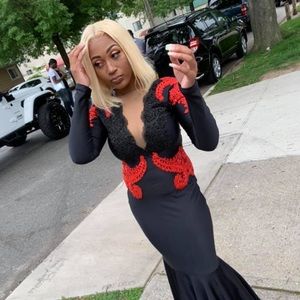 hi My Name is tyonn and im selling my prom dress i love it but it has to go its a great material fits just right with a lil room in it .