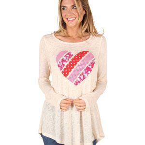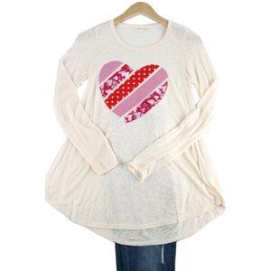 P. S KATE Beige Long Sleeve Pink Red Heart Top B7934