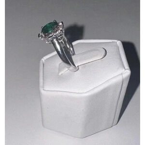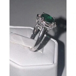 P Star M Sterling Silver 925 White Topaz & Emerald Green Stone Ring Size 6.75