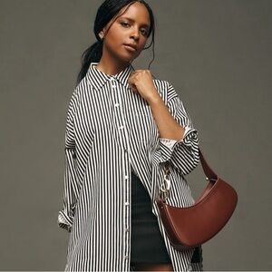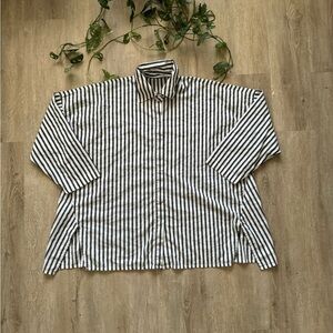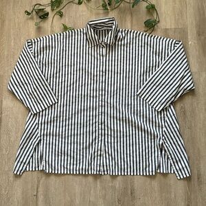 P. Taylor Striped White & Gray Oversized Button Down Shirt