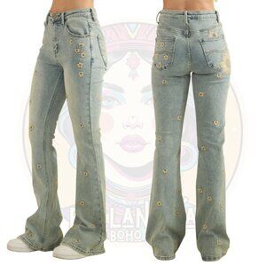 P006 OLI & HALI Lt Blue Denim Floral Embroidered Flare Stretch Jeans