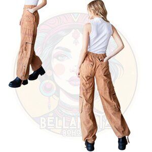 P030 OLI & HALI Camel Mineral Washed Multi-Pocket Cargo Pants