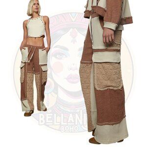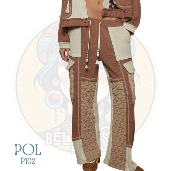 P102 POL Oat/ Chocolate Floral Knit Thermal Quilted Pants