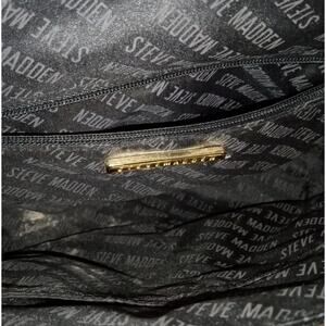 This Steve Madden crossbody bag combines sleek black material with luxurious gold hardware, creating a timeless and versatile accessory. The structured rectangular shape and adjustable strap offer both style and functionality, making it perfect for any occasion. The gold chain detail adds a touch of elegance, ensuring this bag stands out in any setting.