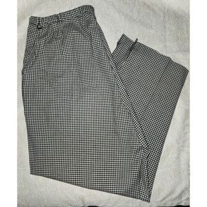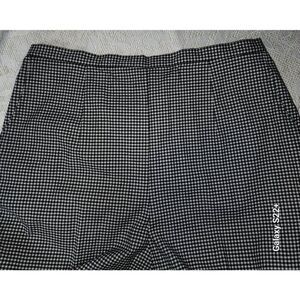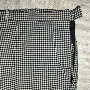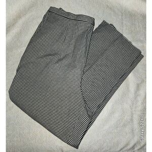 DESCRIPTION: Black and white plaid dress slacks with elastic waist band and slits at sides