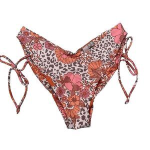 P2F Orange & Pink Floral Cheetah Print Jimi High Leg V Cut Bikini Bottom