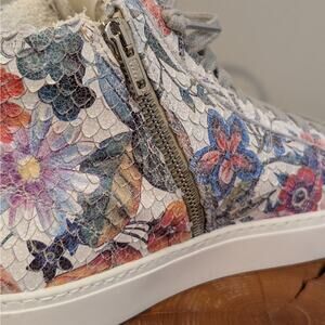 P448 High Top Sneaker RARE Snake-Embossed Floral Print Zip- Size 41/10.5