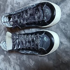 P448 high top sneakers, size 36 (fits like 6-6.5), barely worn. Noted in the photo, one of the tongues is discolored, but I think it can be washed or cleaned.