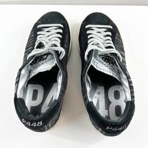 P448 John Low Top Lace Up Zebra Print Shoes Sneakers Black 7