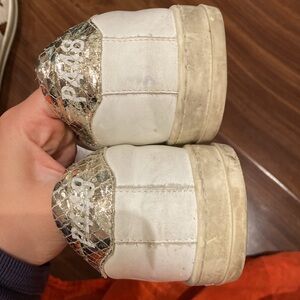 P448 / John Low Top Perforated Sneakers white glitter snakeskin shoes 39 9