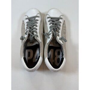 P448 Low-Top Sneakers White/Silver Leather Suede Lace-Up Shoes sz 38 (US 7.5)