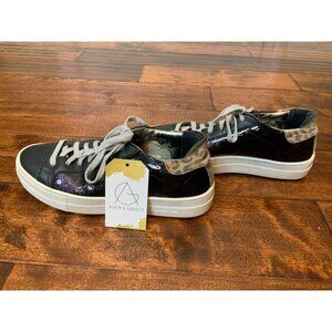 P448 Purple Sparkle Patent Leather & Leopard Lace-Up Sneakers, Size 9 US 39 IT