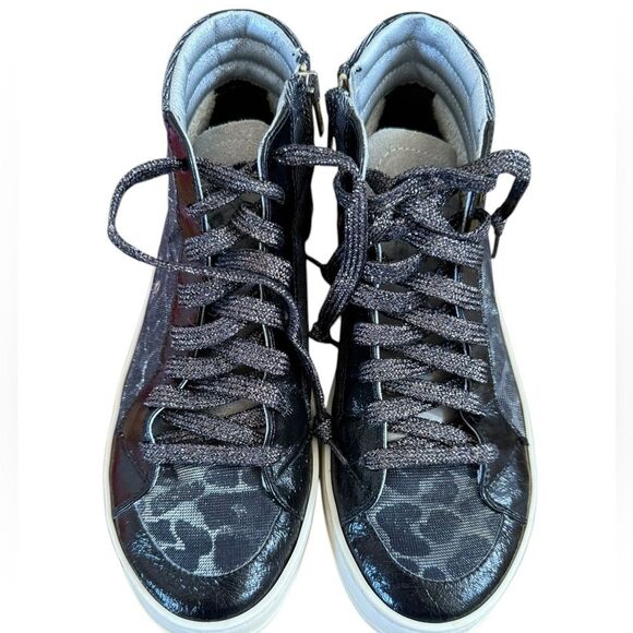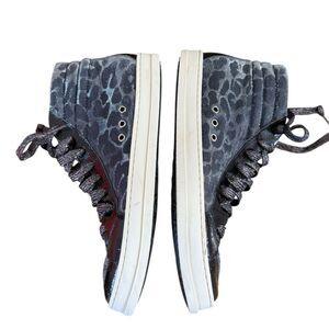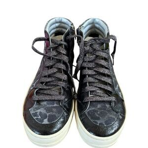 P448 SKATE HIGH TOP LEOPARD PRINT TEXTILE / LEATHER SNEAKERS SIZE 38 IN BLACK