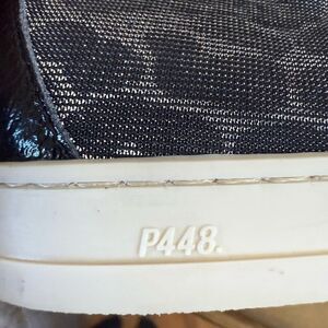 A staple in the P448 collection, this hi-top sneaker is designed with a glittering leopard-print upper and toe, distressed outer sole, convenient side-zip closure and a heel protector that offers additional support.