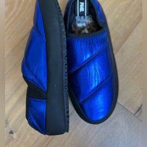 Like new condition. The P448 Laby Slip-On Sneakers in blue are a stylish and casual option with a slip-on design. These shoes are made with a synthetic upper and feature a metallic finish.
