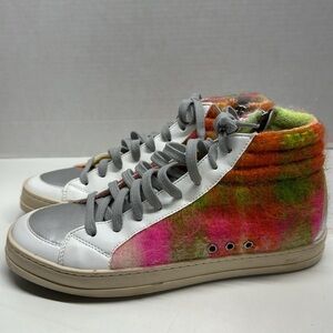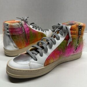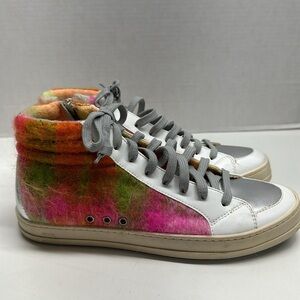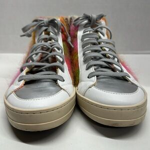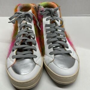 P448 Sneakers Shoes Lace Up Hi Top Shoe Colorful Furry Rainbow Womens Size 38 8