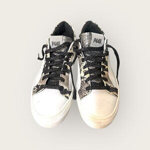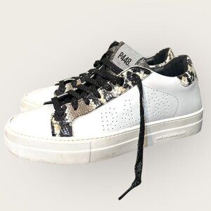 P448 Thea Platform Sneaker 41 US 10.5 White Leather Snakeskin Trim EUC Women