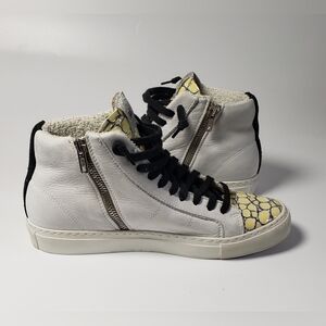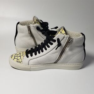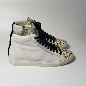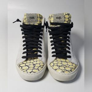 P448 Women's High Top White / Yellow Embossed Toe Sneaker Size 36